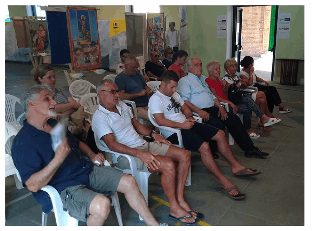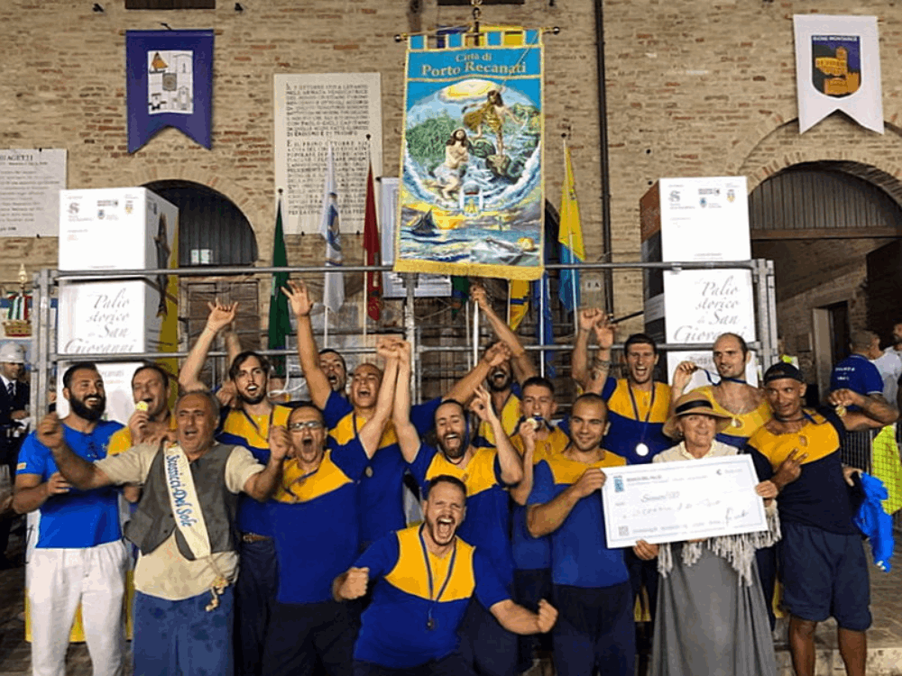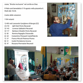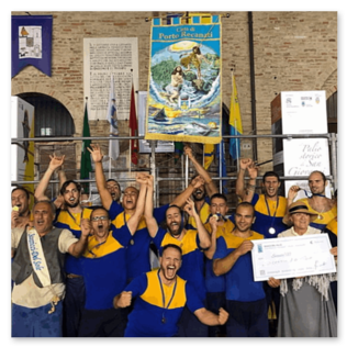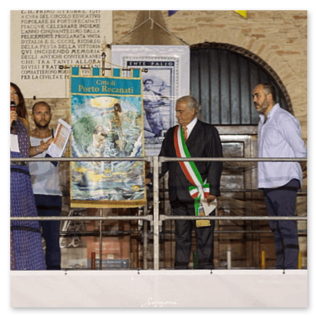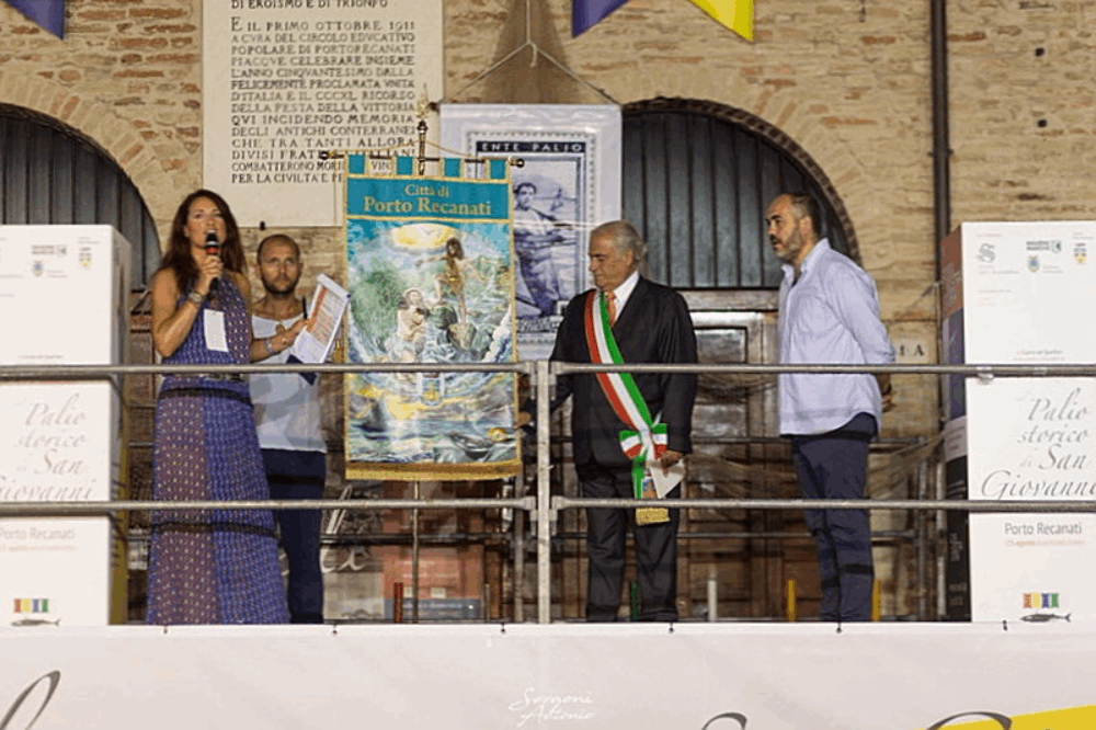Possiamo notare una piccola barca da pesca: la sciabbega, tradizionale imbarcazione usata dai pescatori di Porto Recanati e a cui è dedicato anche il Palio.